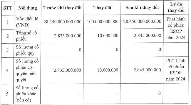 Phương án này thuộc một trong ba cấu phần của kế hoạch tăng vốn điều lệ đã được ĐHĐCĐ thường niên năm 2024 thông qua. Theo đó, SeABank sẽ phát hành thêm tổng cộng 45 triệu cổ phiếu ESOP, giúp vốn điều lệ tăng tối đa 450 tỷ đồng.