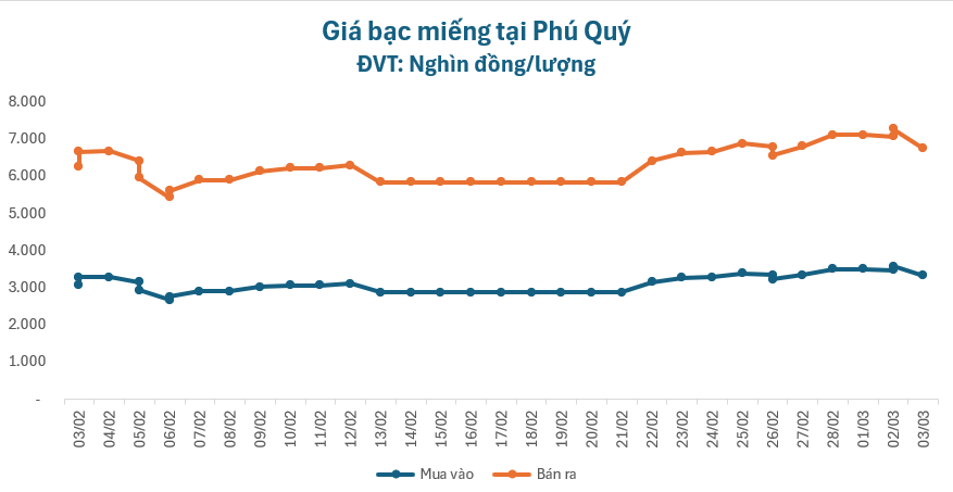 Tại Ancarat, giá bạc miếng giảm 247.000 đồng/lượng ở chiều mua và giảm 255.000 đồng ở chiều bán, quanh mức 3.340.000 – 3.443.000 đồng/lượng (mua – bán).