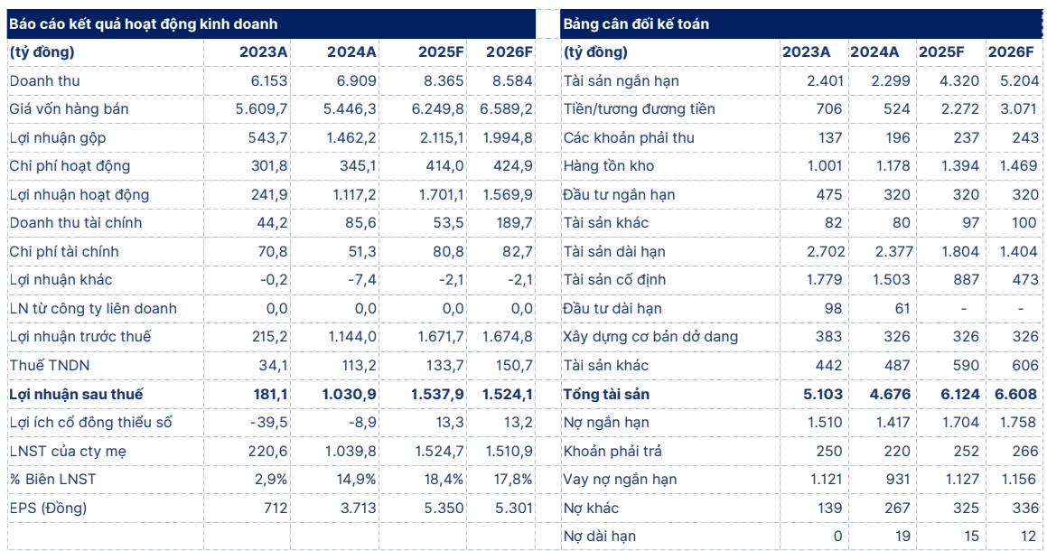 SHS dự báo HPA sẽ đạt 8.365 tỷ đồng doanh thu và 1.538 tỷ đồng lợi nhuận sau thuế trong năm 2025, tương đương lợi nhuận quý IV/2025 đạt 241 tỷ đồng do biên lợi nhuận từ mảng chăn nuôi heo giảm trong quý IV.