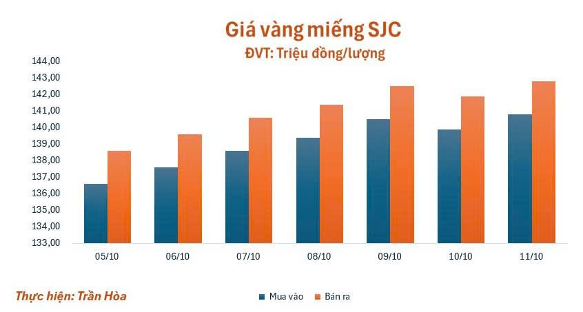 Giá vàng trong nước tăng mạnh 4,2 triệu đồng/lượng so với mốc đóng cửa phiên cuối tuần trước, đạt ngưỡng 140,8 – 142,8 triệu đồng/lượng, phá vỡ mọi kỷ lục.