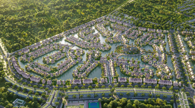 Lấy cảm hứng từ ngôi làng Giethoorn ở Hà Lan với mặt nước biến thiên bao quanh để tạo cảnh quan, Đảo Châu Âu, Eco Central Park (rộng gần 200ha, tại phường Trường Vinh, tỉnh Nghệ An) của nhà sáng lập Ecopark được quy hoạch với 4.7ha diện tích xây dựng, 10ha diện tích mặt nước. Tỉ lệ 1m2 xây dựng được làm mát bởi 2m2 mặt nước không chỉ là chỉ số quy hoạch, mà là tuyên ngôn đắt giá về triết lý sống, giá trị bền vững, đưa “kiến trúc làm nền, thiên nhiên mới là chủ thể”.