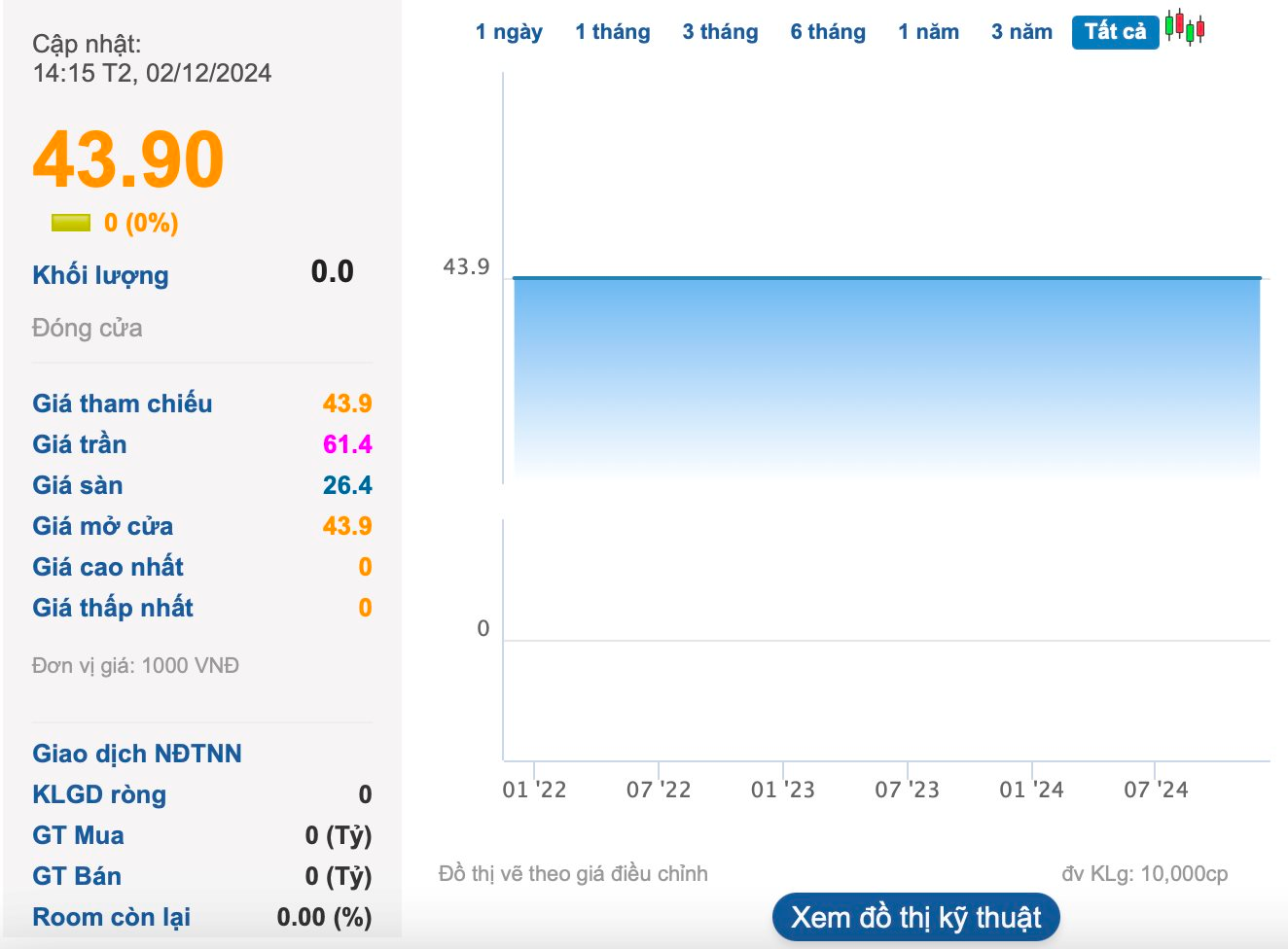 CNA đưa cổ phiếu lên sàn UPCoM vào tháng 12/2021 nhưng không có giao dịch từ đó đến nay và dậm chân ở mức 43.900 đồng/cp.