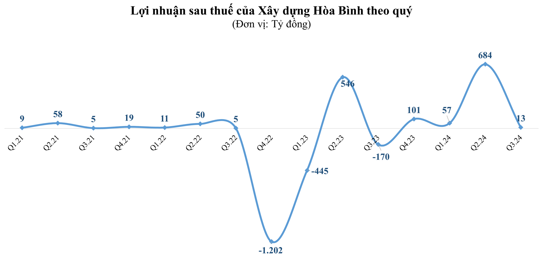Dù vậy, lũy kế 9 tháng, Xây dựng Hòa Bình mới đạt doanh thu gần 2.760 tỷ đồng và lãi sau thuế 240 tỷ đồng, giảm lần lượt 42% và 72% so với cùng kỳ năm trước, đồng thời, cách khá xa so với kế hoạch cả năm đạt 9.000 tỷ đồng doanh thu và 360 tỷ đồng lợi nhuận đặt ra tại đại hội đồng cổ đông (ĐHĐCĐ) thường niên 2025.