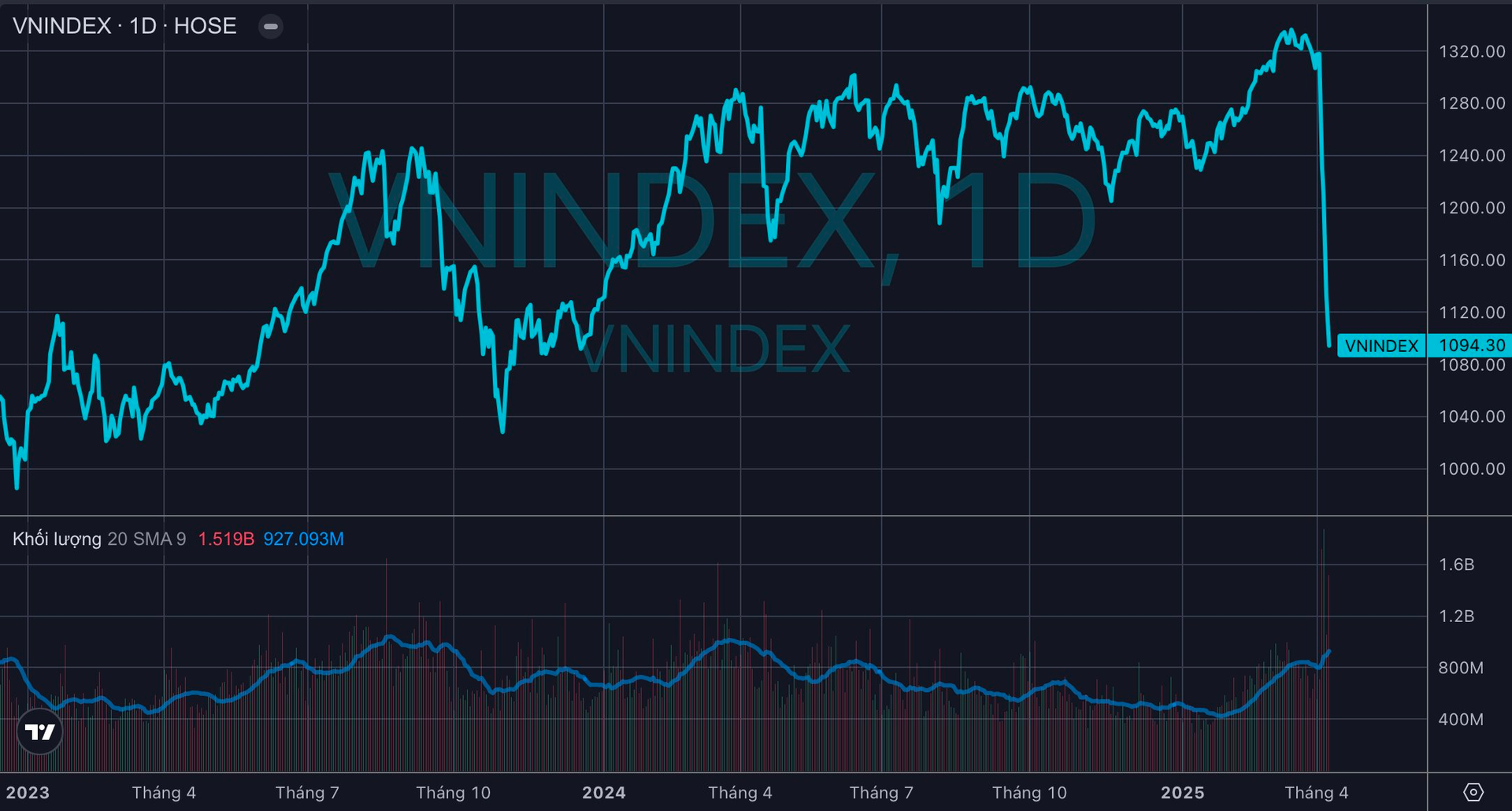 Thị trường chứng khoán Việt Nam vừa trải qua một phiên giao dịch rung lắc dữ dội. Mở cửa trong sắc đỏ sàn, VN-Index mất gần 60 điểm sau ATO xuống mức thấp nhất kể từ tháng 11/2023. Tại đây, cầu bắt đáy nhập cuộc sớm nhanh chóng kéo thị trường trở lại cân bằng, thậm chí VN-Index còn có thời điểm lấy lại sắc xanh.