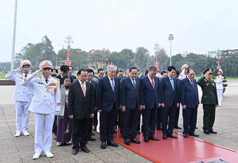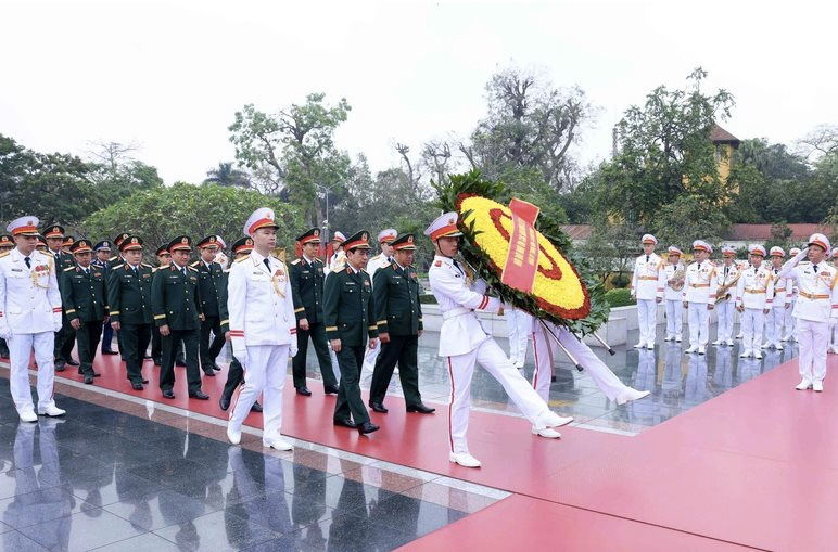 Sau đó, các Đoàn đại biểu Quân ủy Trung ương - Bộ Quốc phòng; Đảng ủy Công an Trung ương - Bộ Công an; Thành ủy, HĐND, UBND TP. Hà Nội... đã đến đặt vòng hoa, vào Lăng viếng Chủ tịch Hồ Chí Minh.