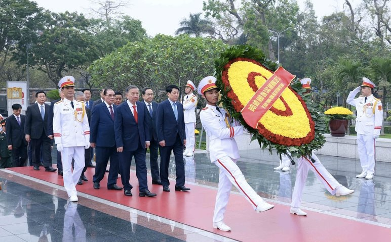 Tiếp đó, Đoàn đại biểu lãnh đạo Đảng, Nhà nước đã tới đặt vòng hoa, dâng hương tưởng niệm các Anh hùng liệt sĩ tại Đài Tưởng niệm các Anh hùng liệt sĩ trên đường Bắc Sơn.