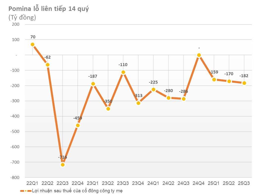 Tính tới ngày 30/9/2025, Pomina đã lỗ luỹ kế gần 3.051 tỷ đồng, vốn chủ sở hữu âm 187 tỷ đồng.