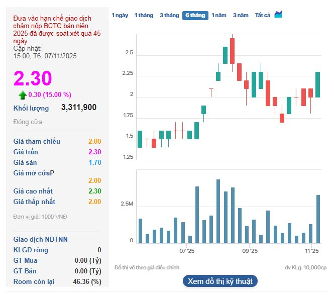 Cổ phiếu POM cũng đang nằm trong diện bị hạn chế giao dịch và chỉ được giao dịch vào thứ Sáu hàng tuần. Nguyên nhân do Pomina chậm nộp BCTC bán niên 2025 đã được soát xét quá 45 ngày kể từ ngày kết thúc thời hạn phải công bố thông tin theo quy định.