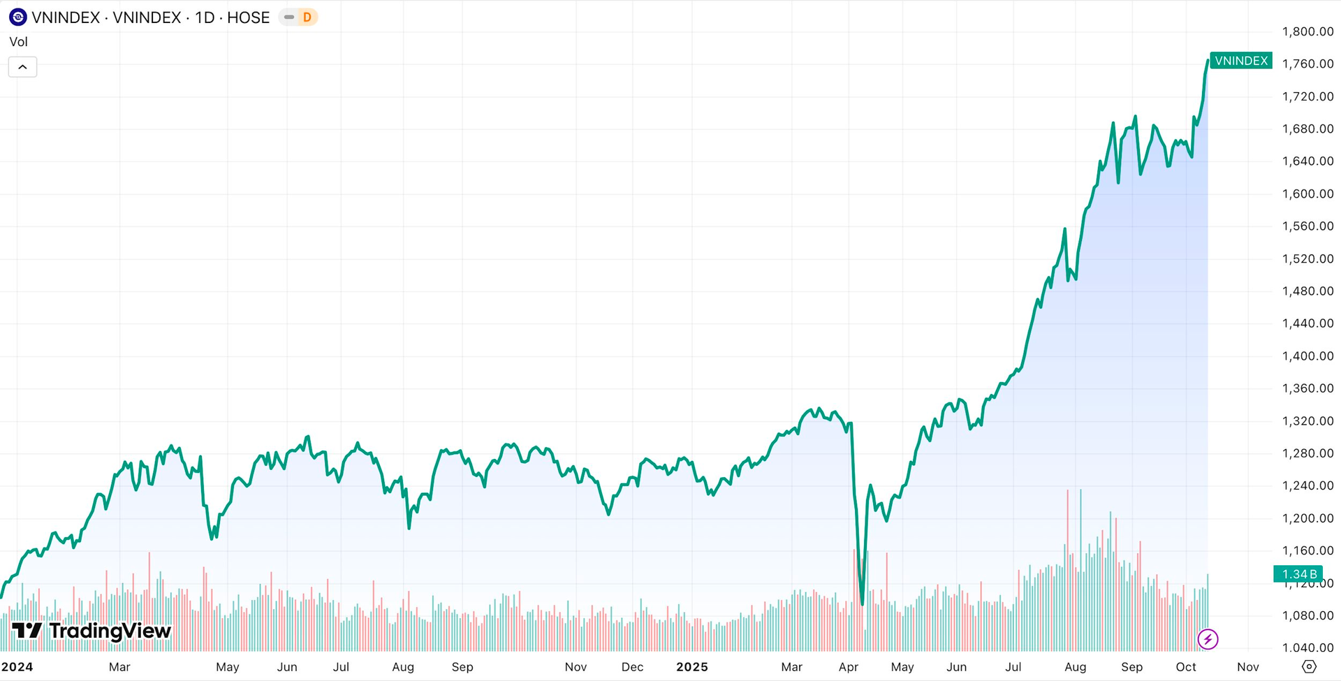 Thị trường chứng khoán Việt Nam đang trong một giai đoạn bùng nổ với cú huých nâng hạng. Với 4 phiên tăng điểm liên tiếp từ sau thông báo chính thức của FTSE Russell, VN-Index đã lập đỉnh mới trên 1.765 điểm, VN30 thậm chí còn vượt 2.000 điểm lần đầu trong lịch sử.