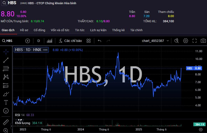 Đáng nói, các cổ phiếu trên đều đang thuộc diện cảnh báo hoặc kiểm soát. Với HBS, cổ phiếu này đang nằm trong diện kiểm soát kể từ ngày 22/9 do chậm nộp báo cáo tài chính soát xét bán niên 2025.