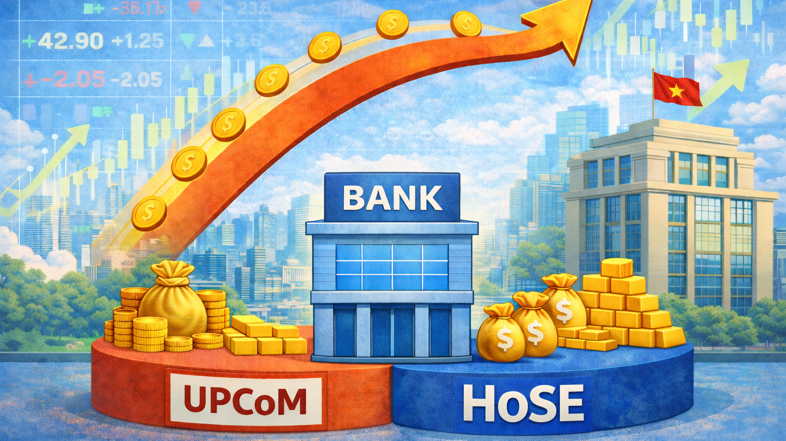 Ở một hướng đi tương tự, Ngân hàng TMCP An Bình (ABBank, UPCoM: ABB) đang xúc tiến chuyển niêm yết từ UPCoM sang HOSE sau hơn 4 năm giao dịch, ngân hàng dự kiến hoàn tất hồ sơ trong giai đoạn tháng 5–9/2026 và đưa cổ phiếu lên HOSE vào quý 4/2026. Việc chuyển sàn được xem là bước nâng tầm về uy tín, minh bạch và chuẩn mực quản trị, đồng thời mở rộng khả năng tiếp cận vốn trung – dài hạn, đặc biệt từ nhà đầu tư tổ chức và khối ngoại.