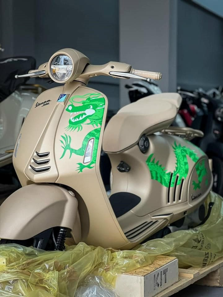 Được biết, Vespa 946 Dragon ra mắt vào tháng 1/2024 trong một sự kiện tổ chức tại Hong Kong (Trung Quốc). Xe có màu sơn vàng ánh kim với điểm nhấn là họa tiết rồng màu xanh ngọc lục bảo vẽ tay từ phần yếm cho đến đuôi xe. Các chi tiết như la-zăng, gương chiếu hậu, tay nắm đền được sơn cùng màu với thân xe.