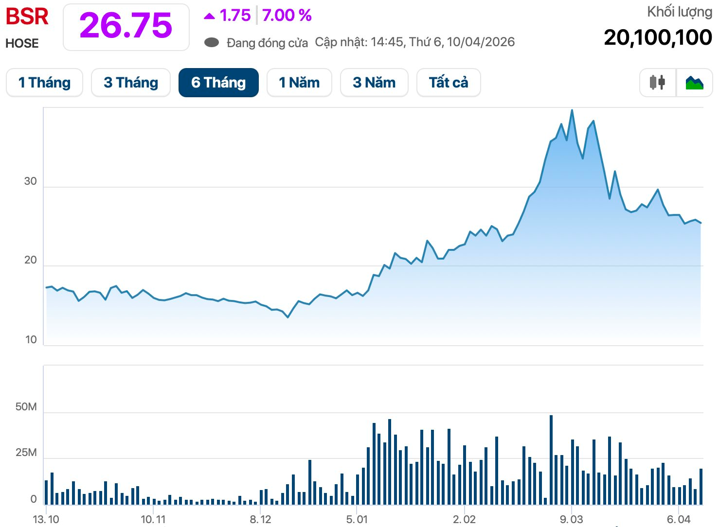 Trước đó, BSR đã công bố tài liệu họp Đại hội đồng cổ đông thường niên năm 2026, dự kiến tổ chức vào ngày 13/4 tại TP HCM. Về kế hoạch kinh doanh 2026, BSR đặt mục tiêu đạt tổng doanh thu hợp nhất đạt hơn 154.140 tỷ đồng và lợi nhuận sau thuế 2.162 tỷ đồng, lần lượt tăng 25% và giảm 58% so với thực hiện năm 2025. Công ty đặt mục tiêu nộp NSNN gần 12.600 tỷ đồng.
