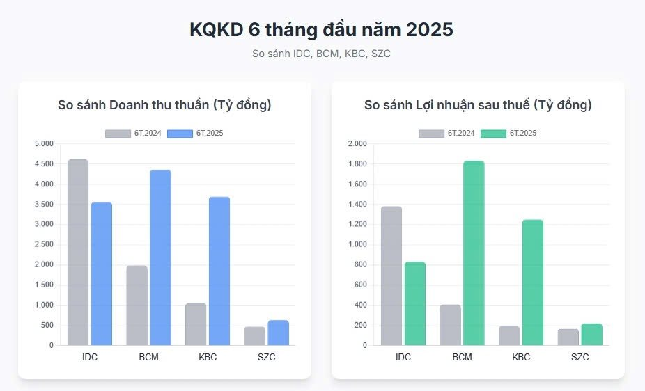 Đặt cạnh kết quả kinh doanh của các đối thủ lớn, trong khi IDICO đi lùi, Becamex (BCM) và Kinh Bắc (KBC) lại có một nửa đầu năm bùng nổ. Cụ thể, lợi nhuận sau thuế 6 tháng của BCM tăng vọt gấp 4,5 lần, đạt hơn 1.833 tỷ đồng; KBC còn ấn tượng hơn với mức tăng trưởng lợi nhuận gấp 6,4 lần, đạt 1.250 tỷ đồng.