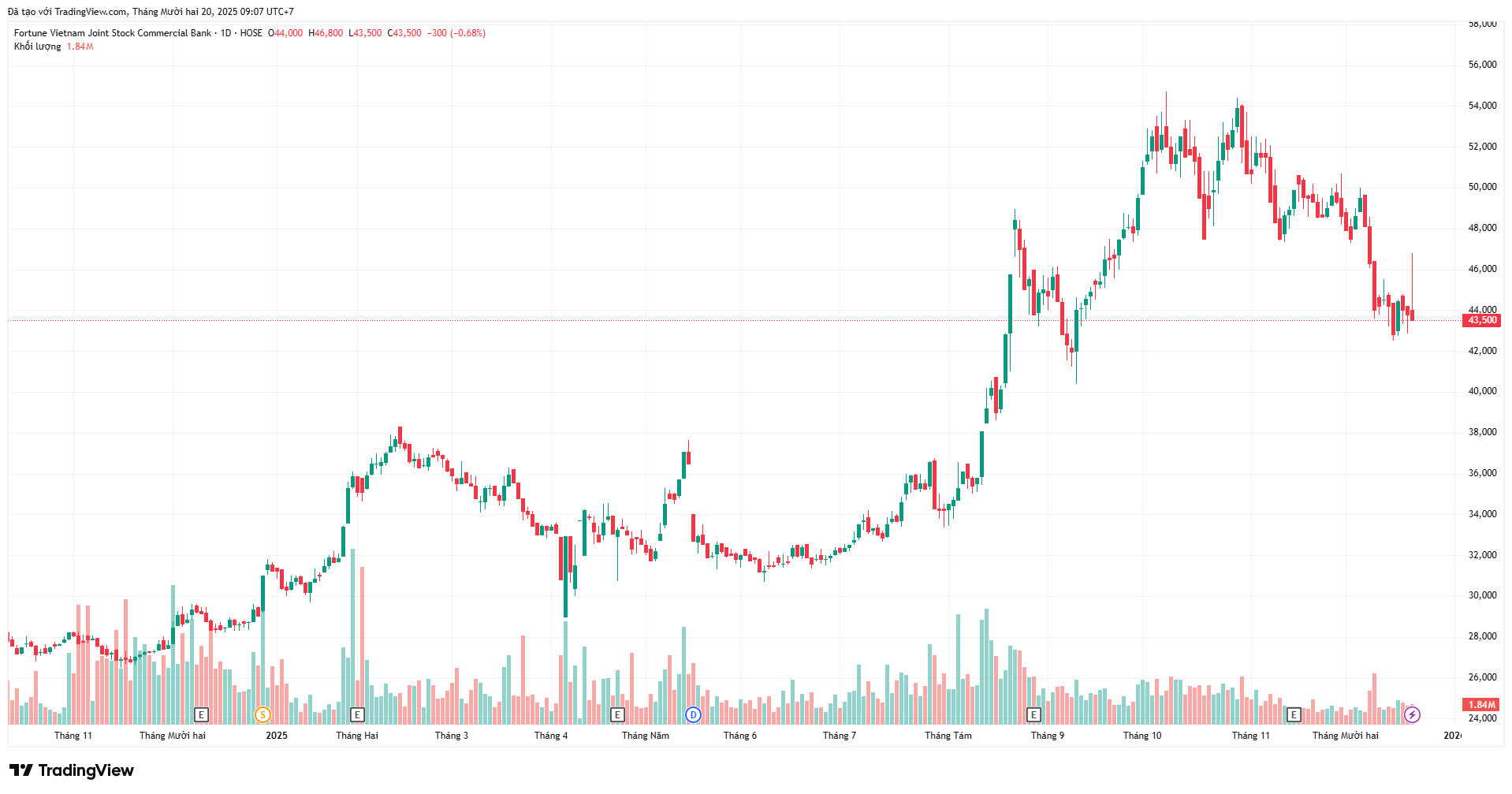 Kết thúc phiên giao dịch ngày 19/12, giá cổ phiếu LPB của LPBank ở mức 43.500 đồng/cổ phiếu, tăng 39,2% so với đầu năm.