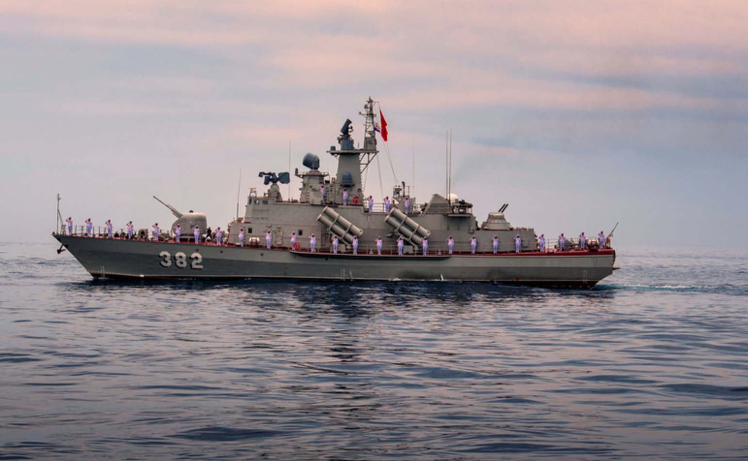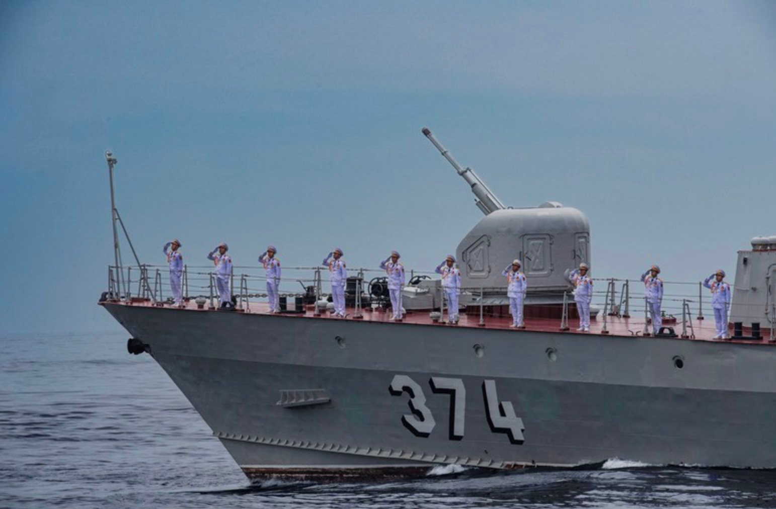 Các lực lượng vũ trang tham gia diễu binh trên biển tại Căn cứ quân sự Cam Ranh, tỉnh Khánh Hòa, rời bến làm nhiệm vụ.