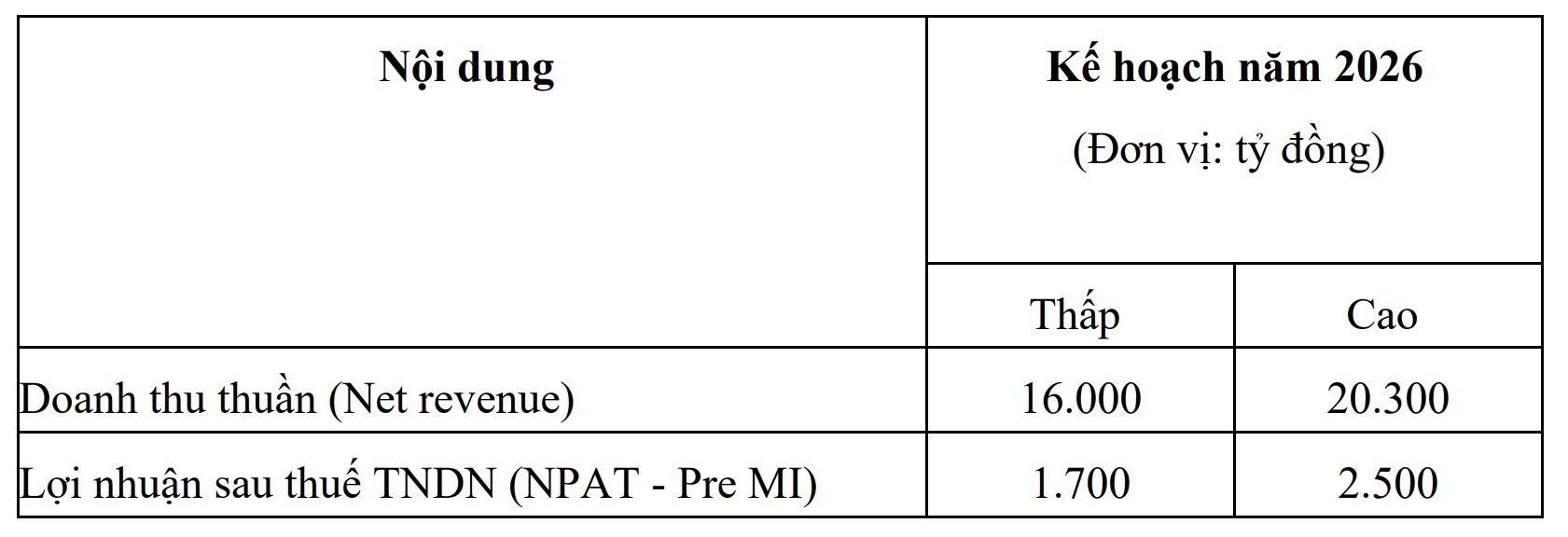 Song song với kế hoạch chuyển sàn, MSR cũng trình ĐHĐCĐ hai kịch bản kinh doanh năm 2026. Kịch bản cơ sở: đặt mục tiêu doanh thu 16.000 tỷ đồng và lợi nhuận sau thuế 1.700 tỷ đồng. Kịch bản tích cực: nâng doanh thu lên 20.300 tỷ đồng và lợi nhuận sau thuế lên 2.500 tỷ đồng.