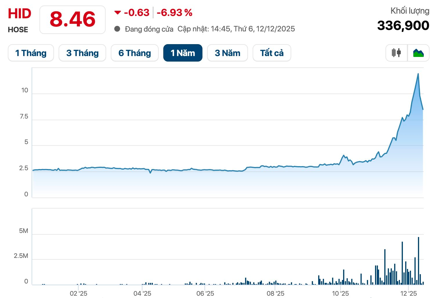 Hiện giá HID đã hạ nhiệt đôi chút, chốt phiên 12/12 đạt 8.460 đồng/cp.