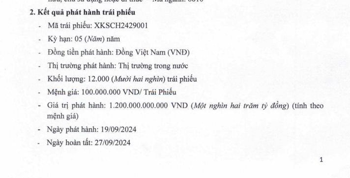 Lô trái phiếu này được phát hành ngày 19/9, hoàn tất vào ngày 27/9, có kỳ hạn 5 năm, đáo hạn ngày 19/9/2029.
