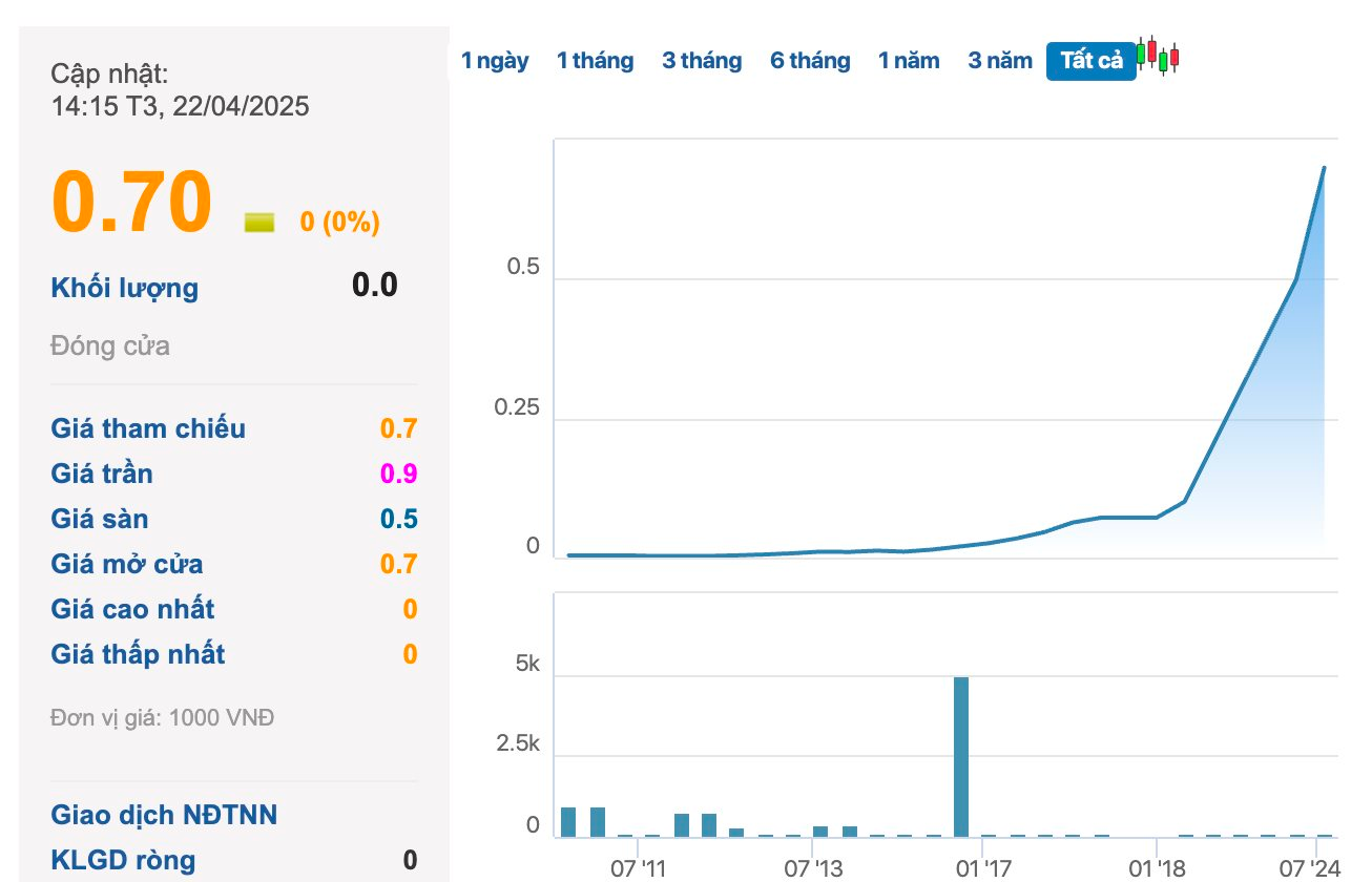 Đặc biệt, cổ phiếu PTG gần như không có giao dịch. Lần gần nhất, cổ phiếu PTG có thanh khoản là ngày 19/8/2024, với 100 đơn vị được giao dịch. Hầu như các cổ đông có xu hướng nắm giữ lâu dài hưởng cổ tức thay vì "trading" lướt sóng ngắn hạn.