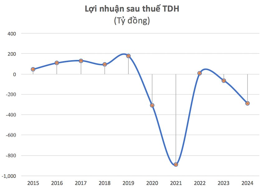 Luỹ kế cả năm 2024, Thuduc House ghi nhận doanh thu thuần gần 49 tỷ đồng, giảm 60% so với năm 2023. TDH báo lỗ sau thuế năm 2024 hơn 288 tỷ đồng, tăng mạnh so với khoản lỗ 63 tỷ đồng cùng kỳ.