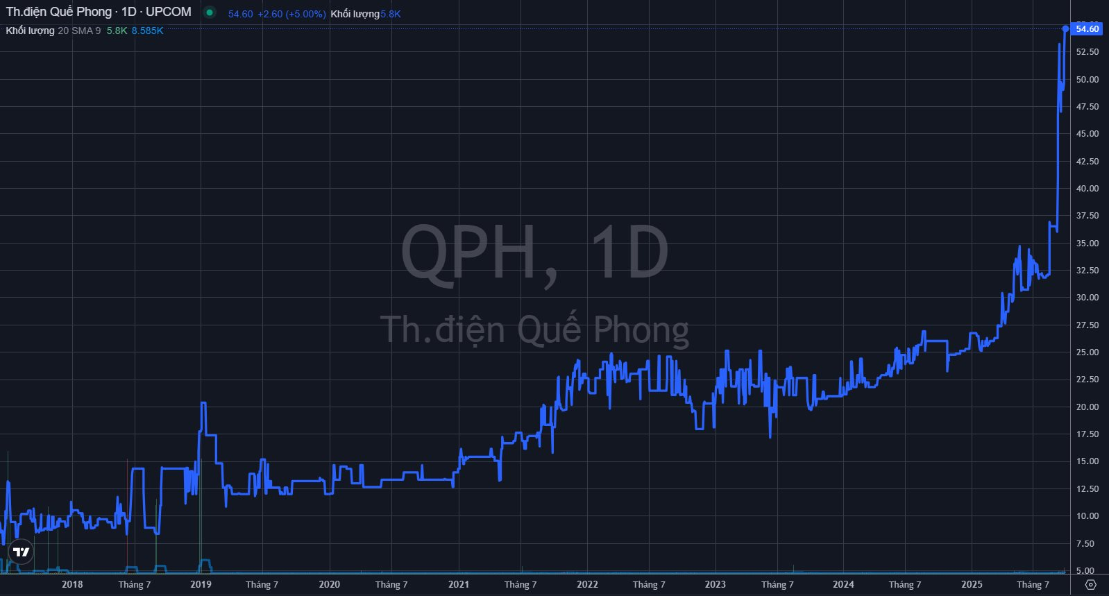 Trên thị trường, cổ phiếu QPH chốt phiên sáng 29/9 đạt 54.600 đồng/cp - mức cao nhất trong lịch sử và tăng gấp đôi kể từ đầu năm 2025.