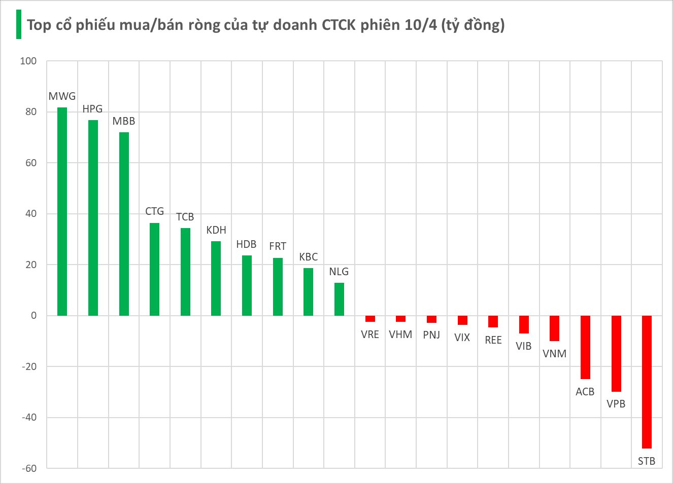 Cụ thể, nhóm tự doanh CTCK bán ròng mạnh nhất tại STB với giá trị -52 tỷ đồng, tiếp theo là VPB (-30 tỷ), ACB (-25 tỷ), VNM (-10 tỷ) và VIB (-7 tỷ đồng). Một số cổ phiếu khác cũng ghi nhận lực bán ròng như REE (-5 tỷ), VIX (-4 tỷ), PNJ (-3 tỷ) và VRE, VHM cùng ở mức -2 tỷ đồng.