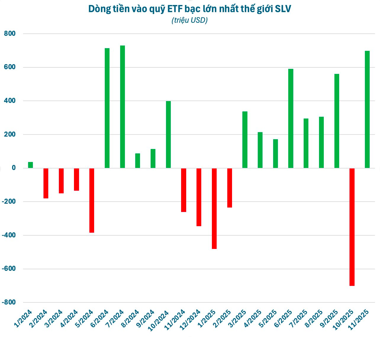 Tính đến đầu tháng 12, iShare Silver Trust do BlackRock quản lý đang là quỹ Bạc lớn nhất thế giới, nắm giữ khoảng 508 triệu oz Bạc (15,8 nghìn tấn), tương đương quy mô tài sản hơn 29 tỷ USD. Từ đầu năm 2025, quỹ đã chi gần 1,8 tỷ USD để mua khoảng 38 triệu oz Bạc (~1,2 nghìn tấn).