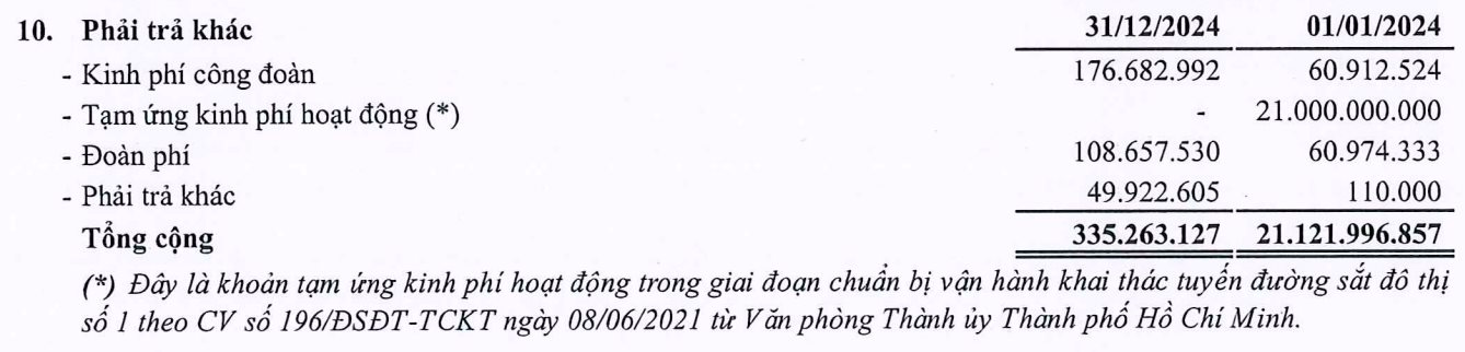 Đây là năm đầu tiên họ ghi nhận doanh thu sau khi tuyến Metro Bến Thành - Suối Tiên vận hành.