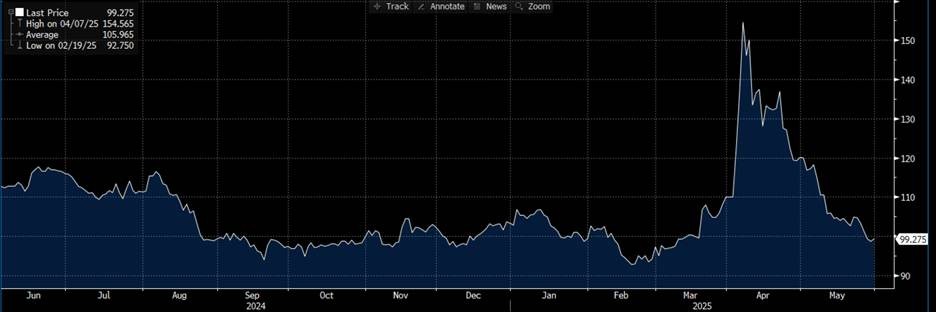 Trong khi đó, tỷ giá USD/VND đã có mức tăng nhẹ 0,33% trong tuần qua, vượt mốc 26.000. Theo ông Nguyễn Thế Minh, diễn biến này diễn ra trong bối cảnh chỉ số DXY cũng biến động mạnh do ảnh hưởng từ căng thẳng thương mại và các yếu tố liên quan đến chính sách thuế quan toàn cầu. Tuy nhiên, ông cho rằng đây chưa phải là dấu hiệu cảnh báo rủi ro vĩ mô, bởi CDS (Credit Default Swap) – đo lường mức độ rủi ro quốc gia – vẫn đang trong xu hướng giảm và chưa có tín hiệu đảo chiều ngắn hạn. Điều này hàm ý rằng biến động tỷ giá hiện tại mang tính ngắn hạn và không phản ánh sự bất ổn hệ thống trong nền kinh tế.