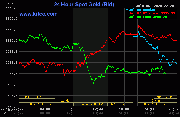 Hiện, giá vàng giao ngay trên Kitco đang được giao dịch ở mức 3.299,79 USD/ounce, giảm 35,6 USD, tương đương 1,07% so với chốt phiên trước. Quy đổi theo tỷ giá tại Vietcombank, giá vàng thế giới đang được giao dịch ở mức 104,6 triệu đồng/lượng, thấp hơn giá vàng trong nước khoảng 14 triệu đồng/lượng.