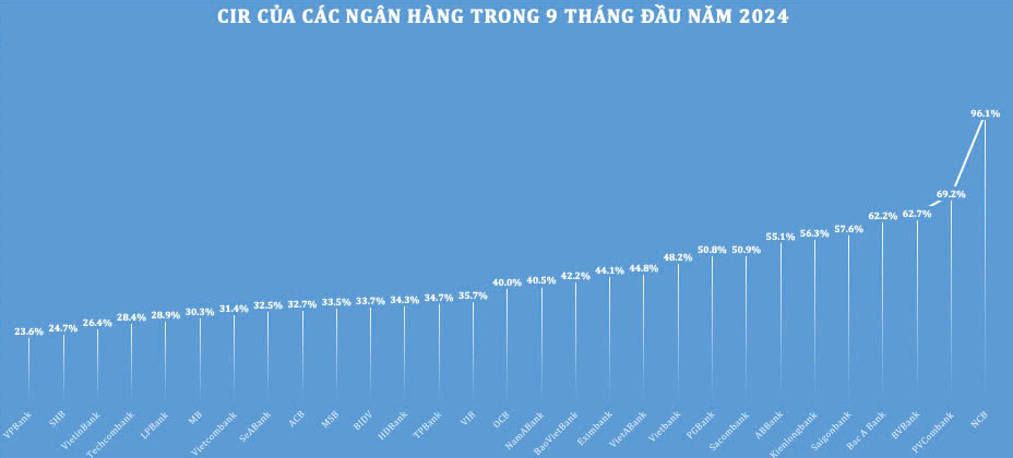 Dù đã đạt nhiều kết quả tích cực, nhưng không phải ngân hàng nào cũng tối ưu được tỷ lệ CIR. Theo khảo sát, 9/29 ngân hàng vẫn có CIR trên 50%, thậm chí một số thành viên có tỷ lệ gần 100%.