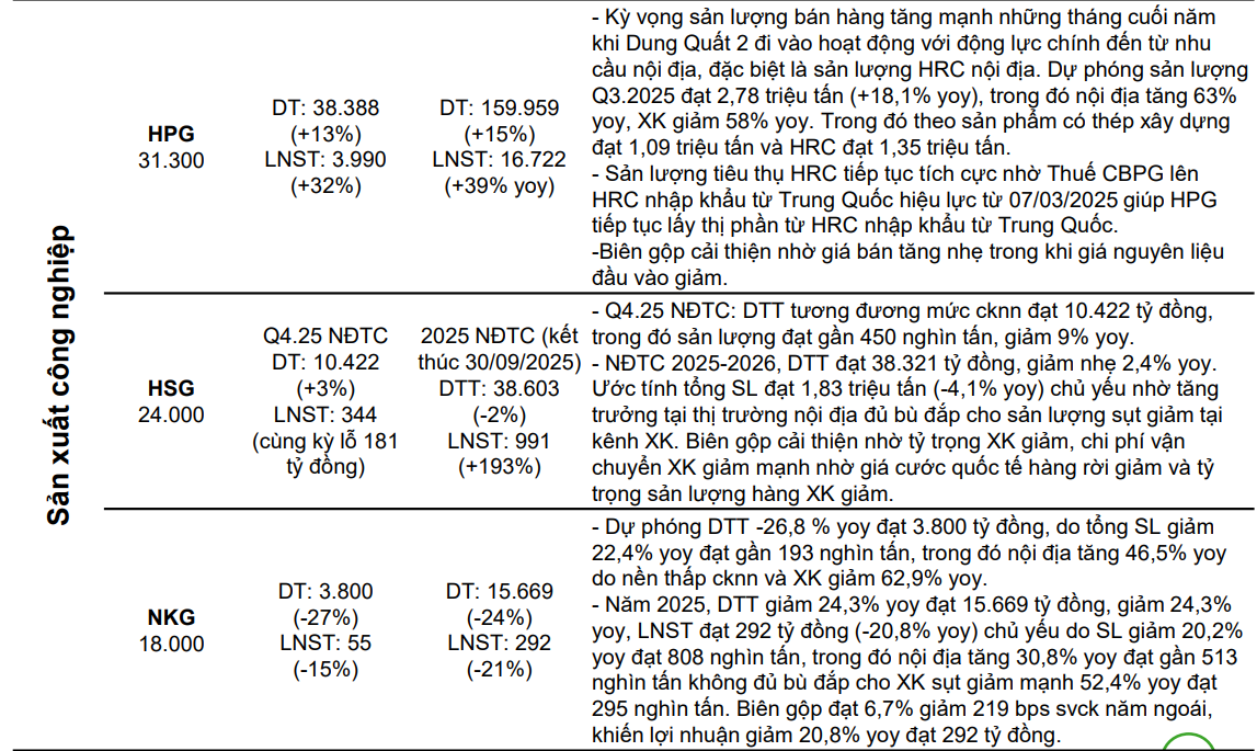 Lợi nhuận sau thuế của Hòa Phát theo đó có thể đạt 4.700 tỷ đồng, 56% so với cùng kỳ, động lực đến từ sản lượng cải thiện 23% so với cùng kỳ và biên lợi nhuận gộp phục hồi 4% nhờ giá bán phục hồi và giá nguyên vật liệu ổn định. Theo đó, kỷ vọng lợi nhuận 9 tháng năm 2025 tăng 34% và hoàn thành 82% kế hoạch năm.