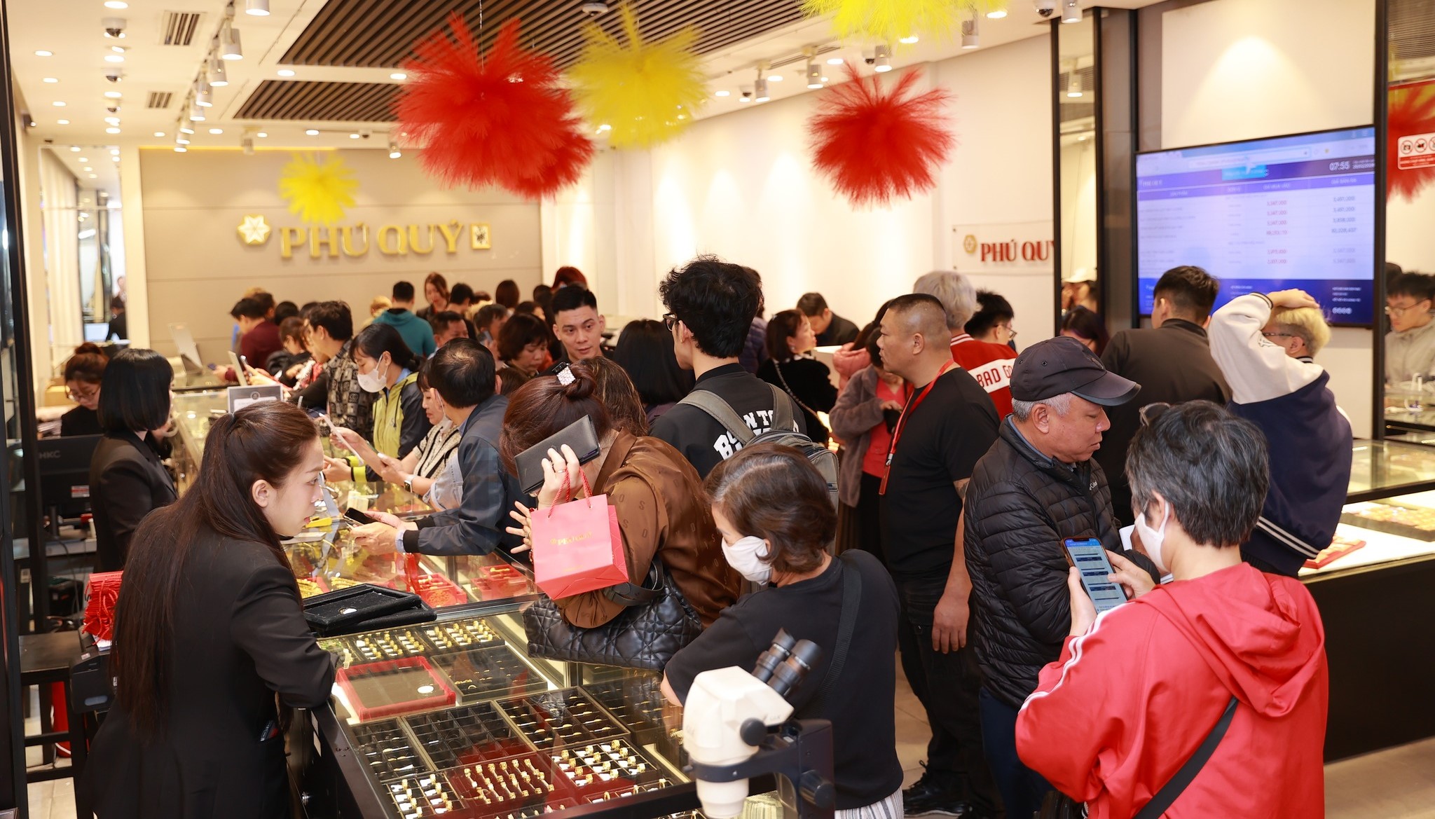 Ghi nhận tại các cửa hàng Phú Quý, lượng người mua đã xếp hàng dài từ sáng sớm, thậm chí có những người “xí chỗ” từ đêm hôm trước, trong đó, có nhiều người trẻ và người có thu nhập trung bình.