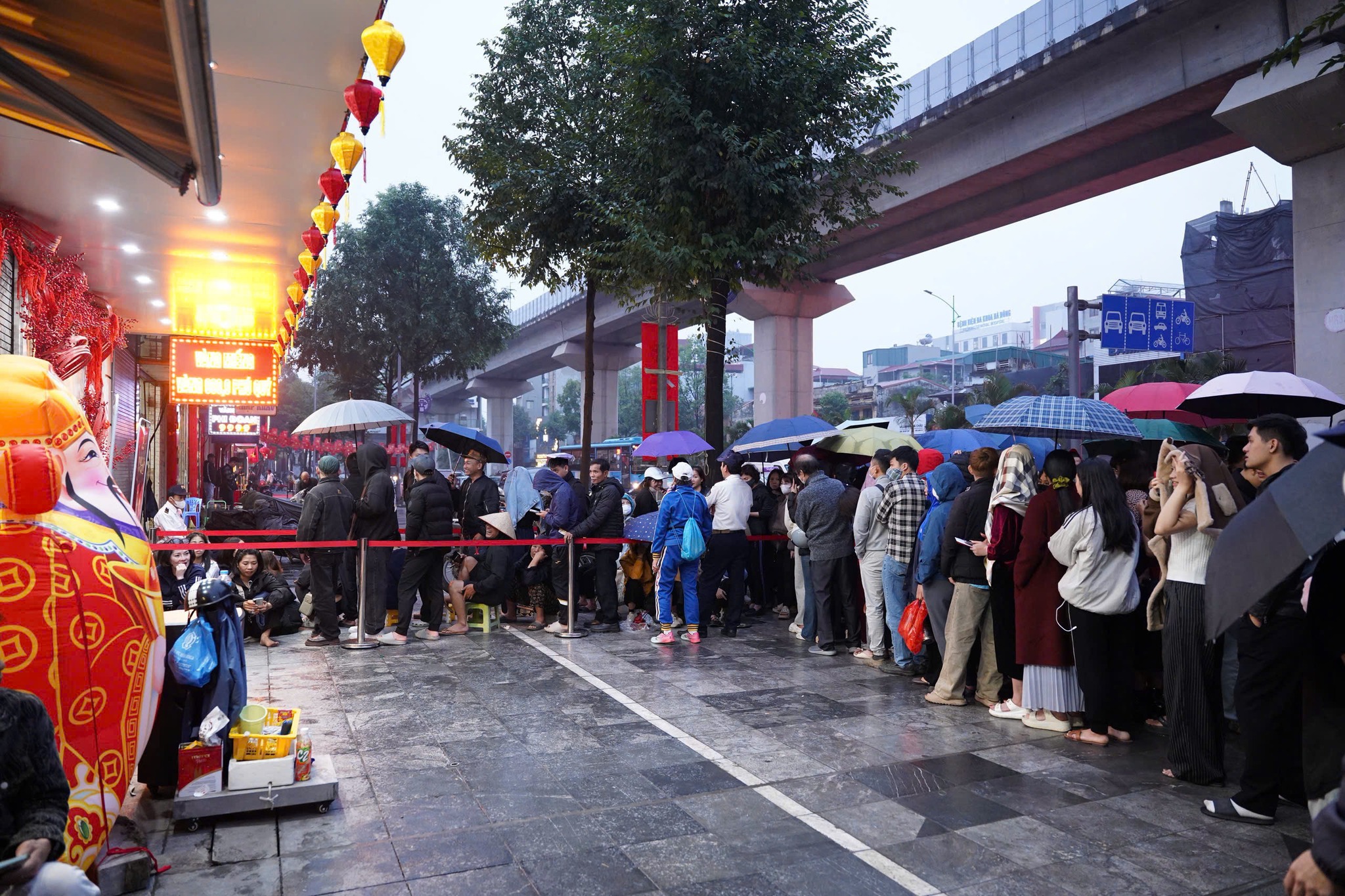 Khảo sát tại một số cửa hàng kinh doanh kim loại quý ở Hà Nội trong sáng nay, dù trời mưa khá dày, nhưng người dân xếp hàng chờ mua vẫn đông nghịt.