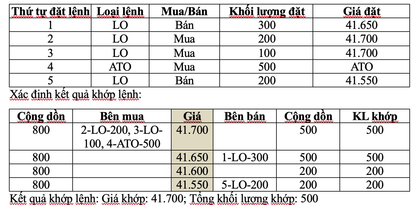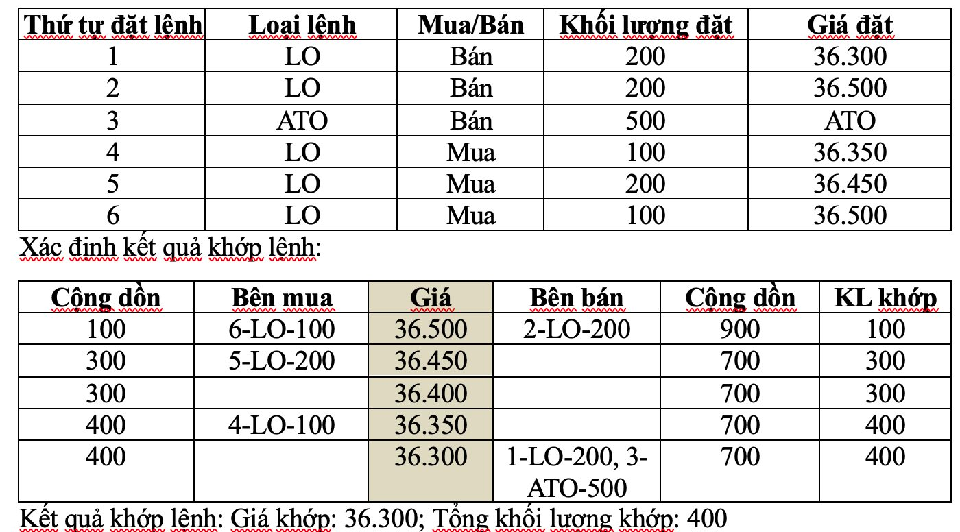 Ví dụ 3: Trên sổ lệnh có cả lệnh ATO mua, ATO bán, lệnh LO mua giá trần nhập trước lệnh ATO mua