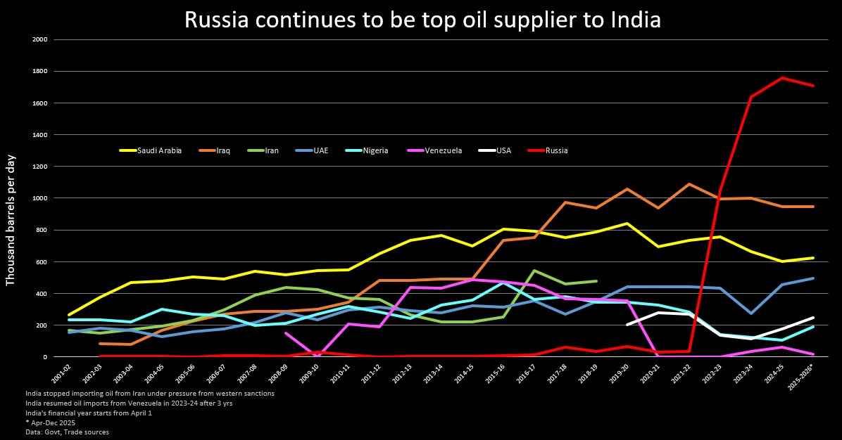 Còn một yếu tố then chốt khác là quyết định dừng nhập khẩu dầu mỏ của các doanh nghiệp lớn tại Ấn Độ. Tập đoàn Reliance, đơn vị mua dầu thô lớn nhất từ Nga đã thông báo ngừng nhận dầu thô theo thỏa thuận dài hạn với Rosneft.