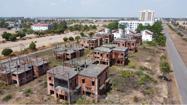 Tương tự, tại trung Tâm đô thị mới Nhơn Trạch (Đồng Nai) sau hơn 30 năm hình thành vẫn “dậm chân tại chỗ”.Tại đây, loạt dự án xây dở dang, đứng hình, tạo nên bức tranh bất động sản đìu hiu suốt nhiều năm.Nhiều dự án hiện chỉ là những dãy nhà "phơi nắng mưa", và không có sự sống suốt hàng chục năm qua.Dãy shophouse luôn trong tình trạng cửa kín then cài. Mặc dù đã bán hết nhưng cư dân chưa về ở được là do thiếu điện, thiếu nước, xung quanh chưa có tiện ích.Mới đây, tại Nhơn Trạch, loạt dự án giao thông mang tính kết nối liên vùng như cầu Nhơn Trạch, 25B, 25C, cao tốc Bến Lức Long Thành và vành đai 3 đã và đang được đầu tư được kỳ vọng đưa Nhơn Trạch phát triển trong tương lai. Tuy nhiên, những dự án giao thông trọng điểm kết nối ra khu vực trung tâm Nhơn Trạch vẫn rất im lìm, không có dấu hiệu của sự hồi sinh chuyển mình trong suốt nhiều năm.