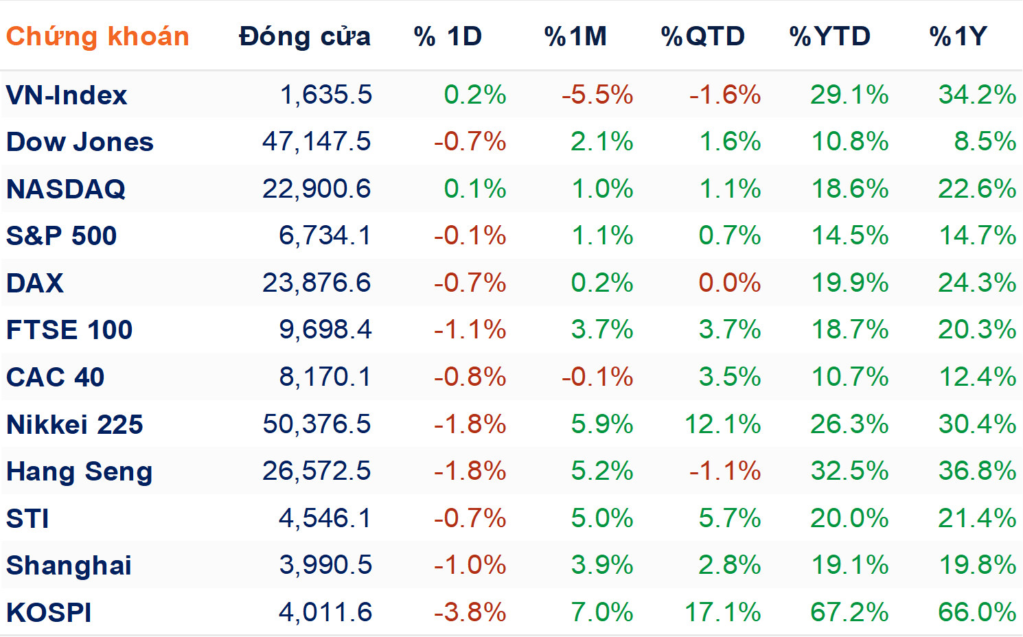 Trái ngược với bối cảnh đó, VN-Index lại phục hồi lên 1.635,5 điểm sau bốn tuần giảm liên tiếp. Bà Hòa lưu ý mặt bằng định giá đã trở nên hấp dẫn. P/E thị trường giảm từ 17 lần xuống 15,7 lần, tạo điều kiện để dòng vốn quay trở lại khi nhà đầu tư nhìn thấy mức chiết khấu tương đối hợp lý so với triển vọng lợi nhuận năm 2026.