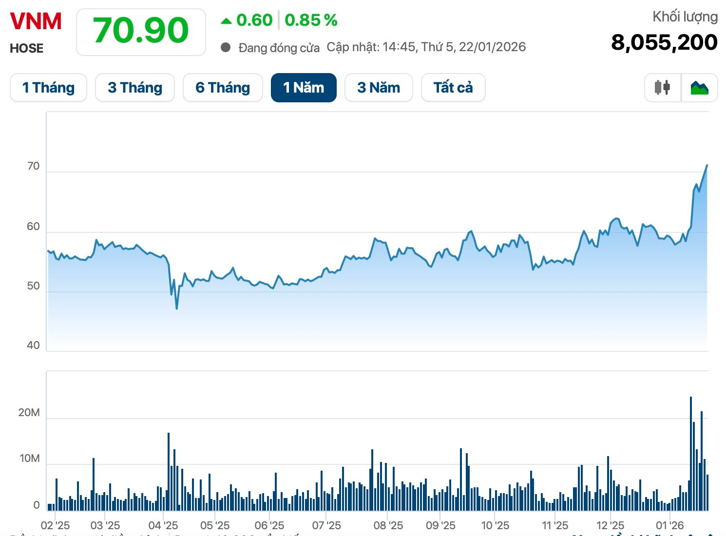 Về triển vọng, báo cáo mới đây của KBSV đánh giá kết quả kinh doanh của Vinamilk năm 2026 sẽ được cải thiện đáng kể nhờ cơ cấu sản phẩm mới có khả năng cạnh tranh cao trong mọi phân khúc, từ trung cấp đến cao cấp. Ngoài ra, sự cải thiện trong thu nhập khả dụng của người lao động thông qua quy định về thuế TNCN mới, cũng như tác động từ hoạt động siết chặt thuế khoán và tái cấu trúc kênh phân phối dần được thích ứng, đem lại triển vọng tích cực.