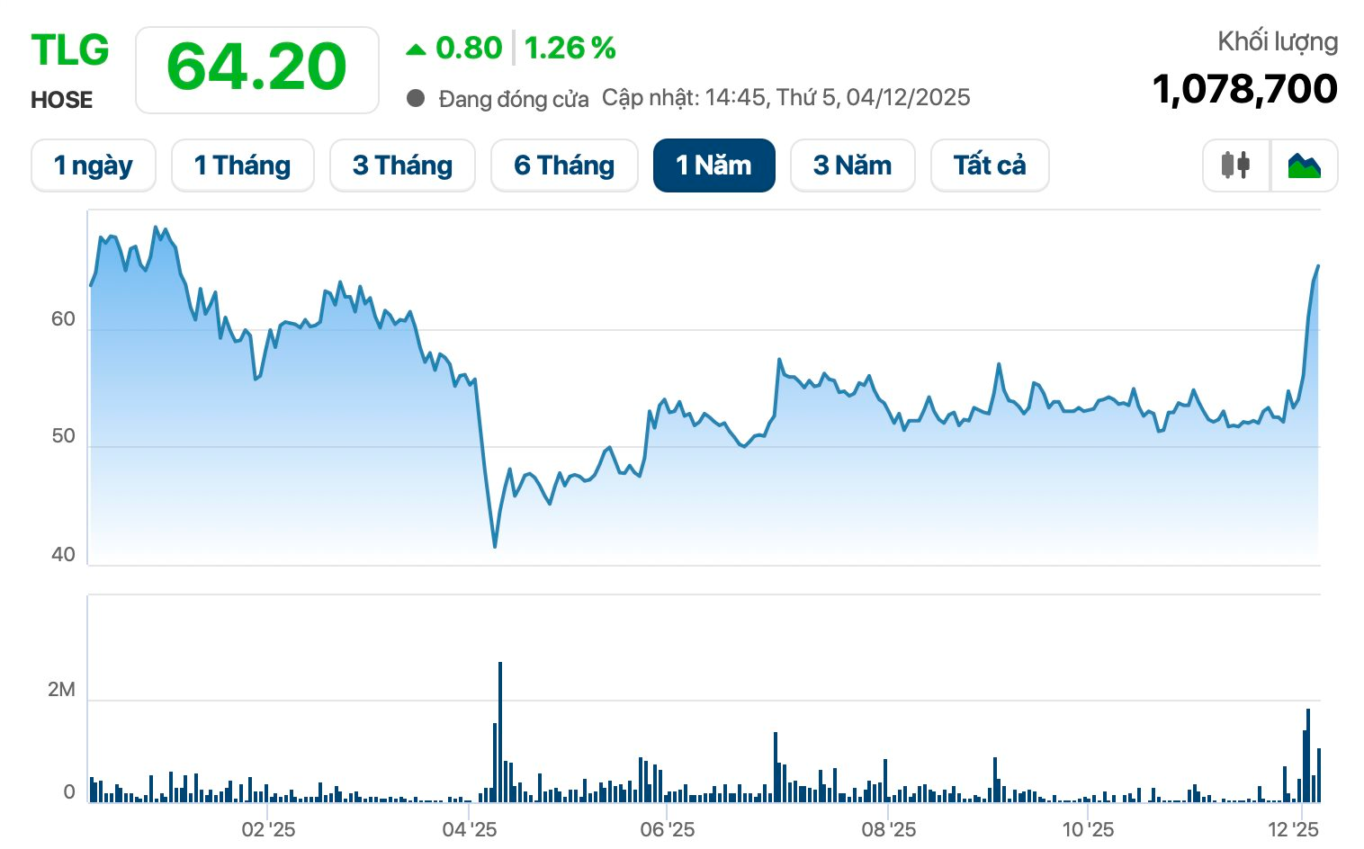 Trên sàn chứng khoán, cổ phiếu TLG đang có nhịp tăng mạnh và hiện dừng ở mức 64.200 đồng/cp, thấp hơn khoảng 7% so với đỉnh lịch sử đạt được cuối năm ngoái. Vốn hóa thị trường tương ứng đạt hơn 5.600 tỷ đồng.