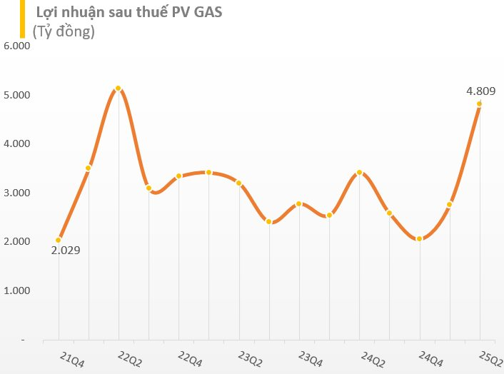 Khấu trừ các khoản chi phí, lợi nhuận sau thuế của PV GAS ghi nhận 4.809 tỷ đồng tăng gần 41% so với cùng kỳ năm ngoái và là mức cao nhất 12 quý. Lợi nhuận sau thuế của cổ đông công ty mẹ đạt 4.748 tỷ đồng, tăng mạnh 43% so với cùng kỳ.