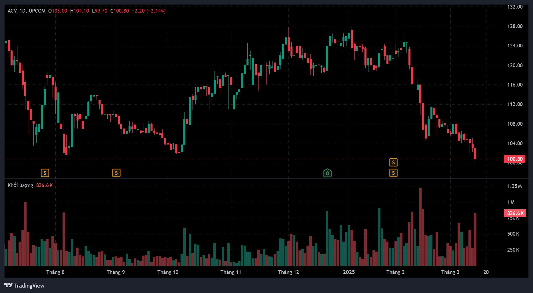 Cổ phiếu ACV bắt đầu giảm mạnh từ ngày 10/2, tính từ đầu tháng 2 tới nay, cổ phiếu ACV đã giảm khoảng 17%.