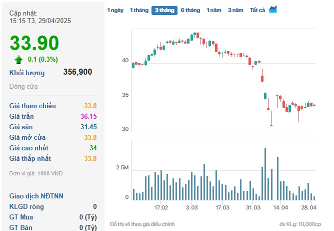 Trên thị trường chứng khoán, kết phiên 29/04, giá cổ phiếu PLX ở mức 33.900 đồng/cổ phiếu, tăng 0,3% so với phiên trước, khối lượng cổ phiếu giao dịch khớp lệnh đạt 356,9 nghìn đơn vị.