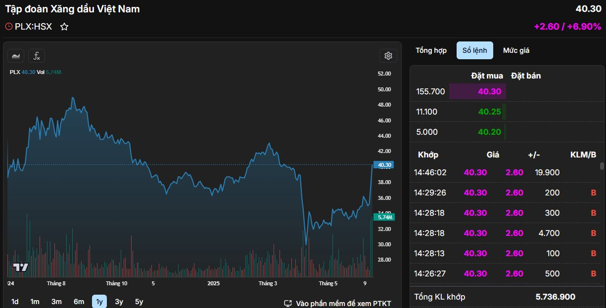 Tiêu biểu trong nhóm này, cổ phiếu Tập đoàn Xăng dầu Việt Nam (Petrolimex, mã : PLX) đã có phiên tăng trần thứ hai liên tiếp, nâng thị giá lên 40.300 đồng/cổ phiếu. Tính từ vùng đáy thiết lập vào đầu tháng 4, PLX đã bật tăng gần 35% lên mức cao nhất trong vòng 3 tháng, đưa vốn hóa Petrolimex lên hơn 51.200 tỷ đồng.