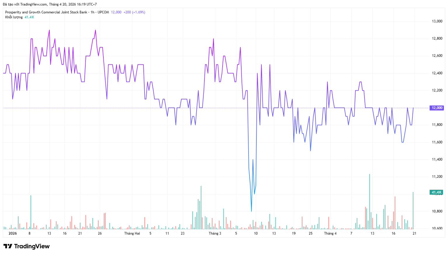 Kết thúc phiên giao dịch ngày 20/4, giá cổ phiếu PGB ở mức 12.000 đồng/cổ phiếu, giảm nhẹ gần 1% so với đầu năm 2026.