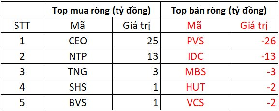 Chiều ngược lại, cổ phiếu PVS bị bán ròng mạnh tay tới 26 tỷ đồng; IDC cũng bị bán ròng tới 13 tỷ; MBS, HUT và VCS cũng bị bán ròng với giá trị từ 2 tỷ tới 3 tỷ đồng.