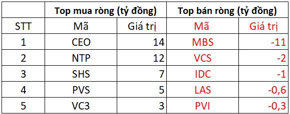 Chiều ngược lại, cổ phiếu MBS bị bán ròng mạnh tay tới 11 tỷ đồng; VCS và IDC cũng bị bán ròng 1-2 tỷ; LAS và PVI cũng bị bán ròng với giá trị khoảng vài trăm triệu đồng.