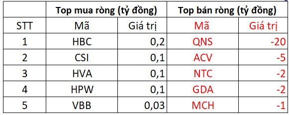 Chiều mua, loạt cổ phiếu HBC, CSI, HVA, HPW,... được mua ròng nhẹ với giá trị chỉ khoảng một vài trăm triệu đồng.