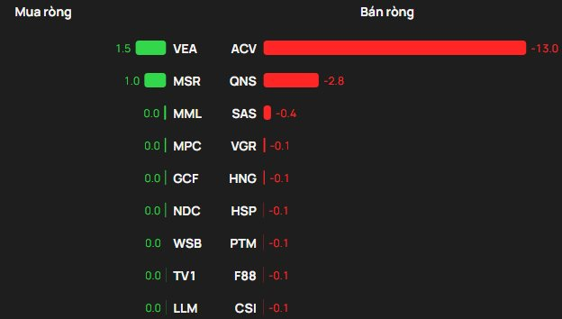 Ngược chiều, ACV bị khối ngoại bán ròng 13 tỷ đồng. Ngoài ra khối ngoại cũng bán ròng tại , QNS, SAS, ,...